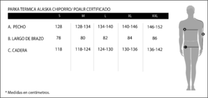 • Forro: Chiporro en cuerpo y Polar en mangas, ambos 100% poliéster.