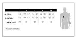- Posee refuerzos de tela en los codos y ante brazos, lugares donde según estudios realizados, es donde más desgaste se genera al utilizar este tipo de prenda.